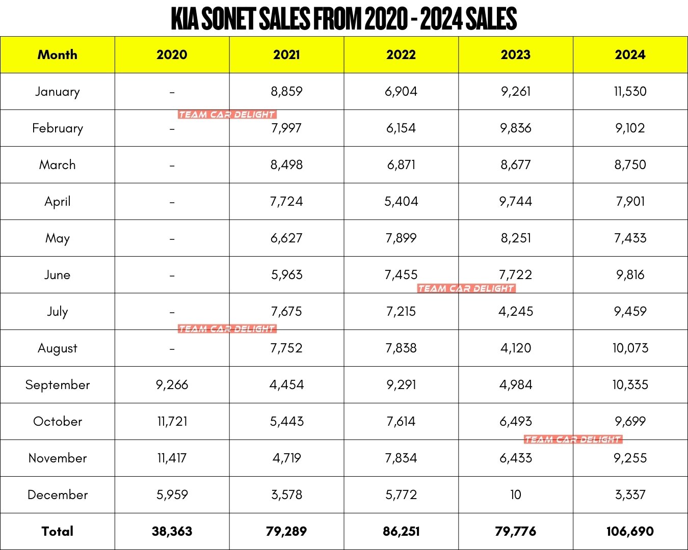 Kia Sonet Sales from 2020 to 2024