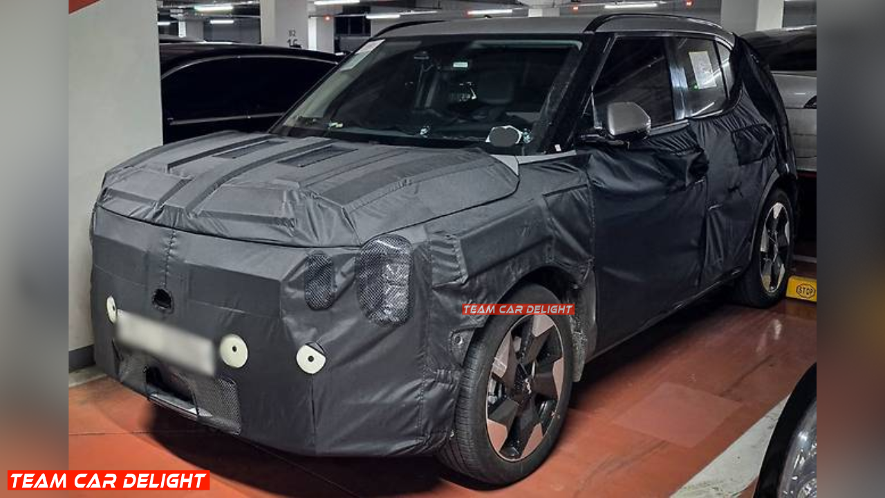 The charging port is positioned at the front, similar to the EV3, suggesting a front-wheel-drive setup based on Kia’s e-GMP platform. The design takes inspiration from Kia’s larger EV9 while also incorporating elements from the EV3.