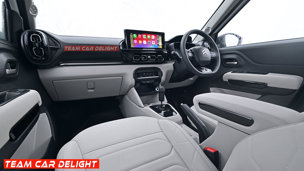 The boot offers a generous 470 litres of capacity, and rear AC vents are included for added comfort. High-spec variants are equipped with a 10.25-inch touchscreen infotainment system, a 7-inch all-digital instrument cluster, a three-spoke steering wheel, a 15W wireless smartphone charger, and connected car technology. The interior design is further refined with Citroen’s C-Cubed motifs, combining gloss black and textured surfaces to create a premium atmosphere.