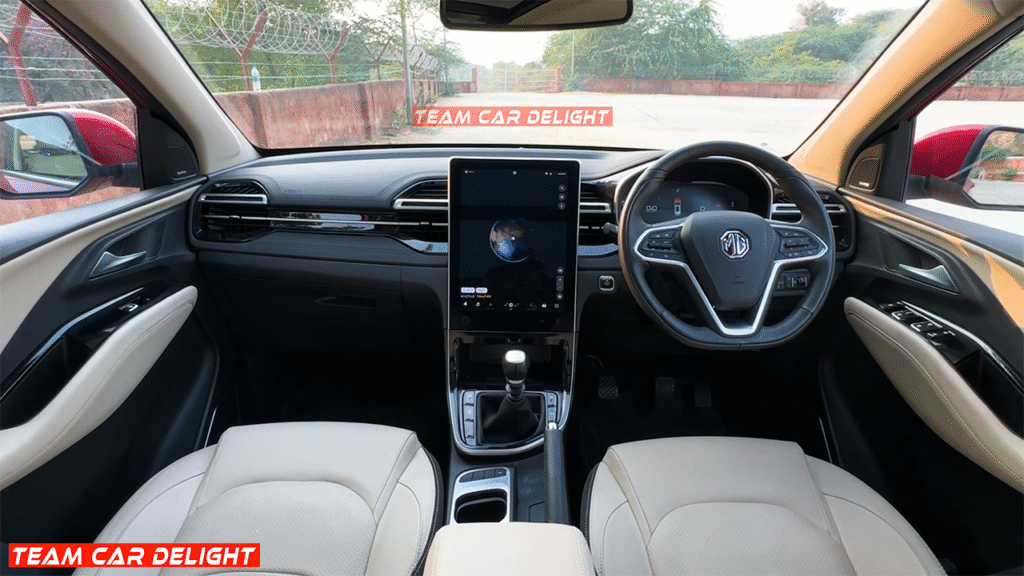 Inside the cabin, the facelift aims to deliver a more premium and tech-rich experience. Ventilated seats are expected for the front and possibly the rear, enhancing comfort for occupants. The connected tech suite is likely to see improvements, along with a more intuitive user interface. MG is also expected to expand the ADAS package, offering smarter safety features that align with evolving market demand. The already-large 14-inch portrait touchscreen is set to become even more capable with the new hardware.