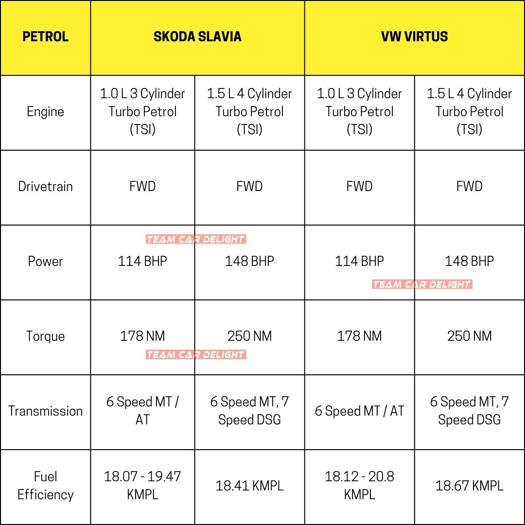 Skoda Slavia vs Volkswagen Virtus – Engine Specs