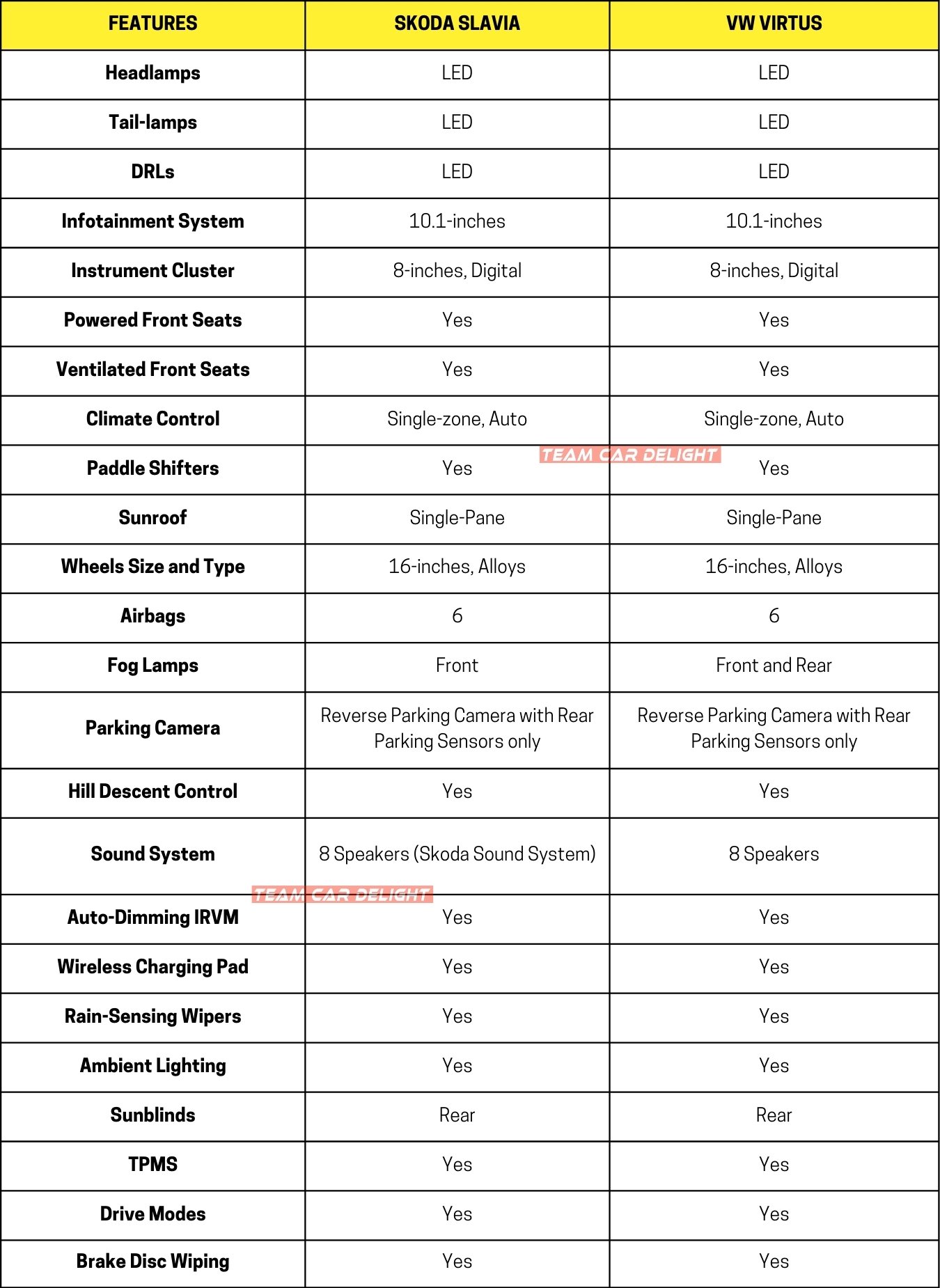 - Both sedans feature list is identical except the Virtus gets Rear LED Fog Lamps.