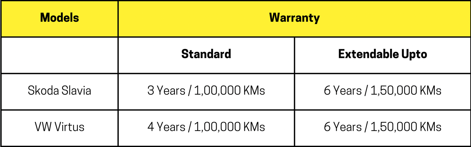 - Virtus offers better warranty package than the Slavia; because as standard, Volkswagen offers 4 Years instead of 3 years while extended warranty is same for both.