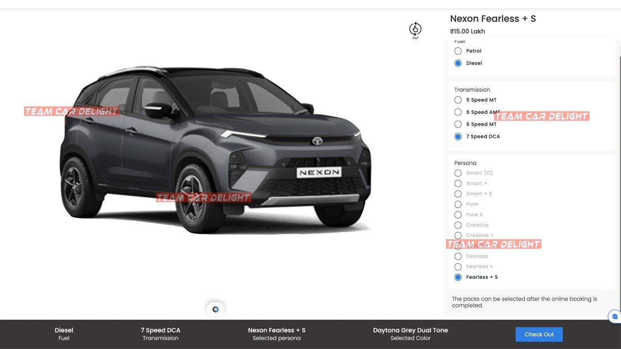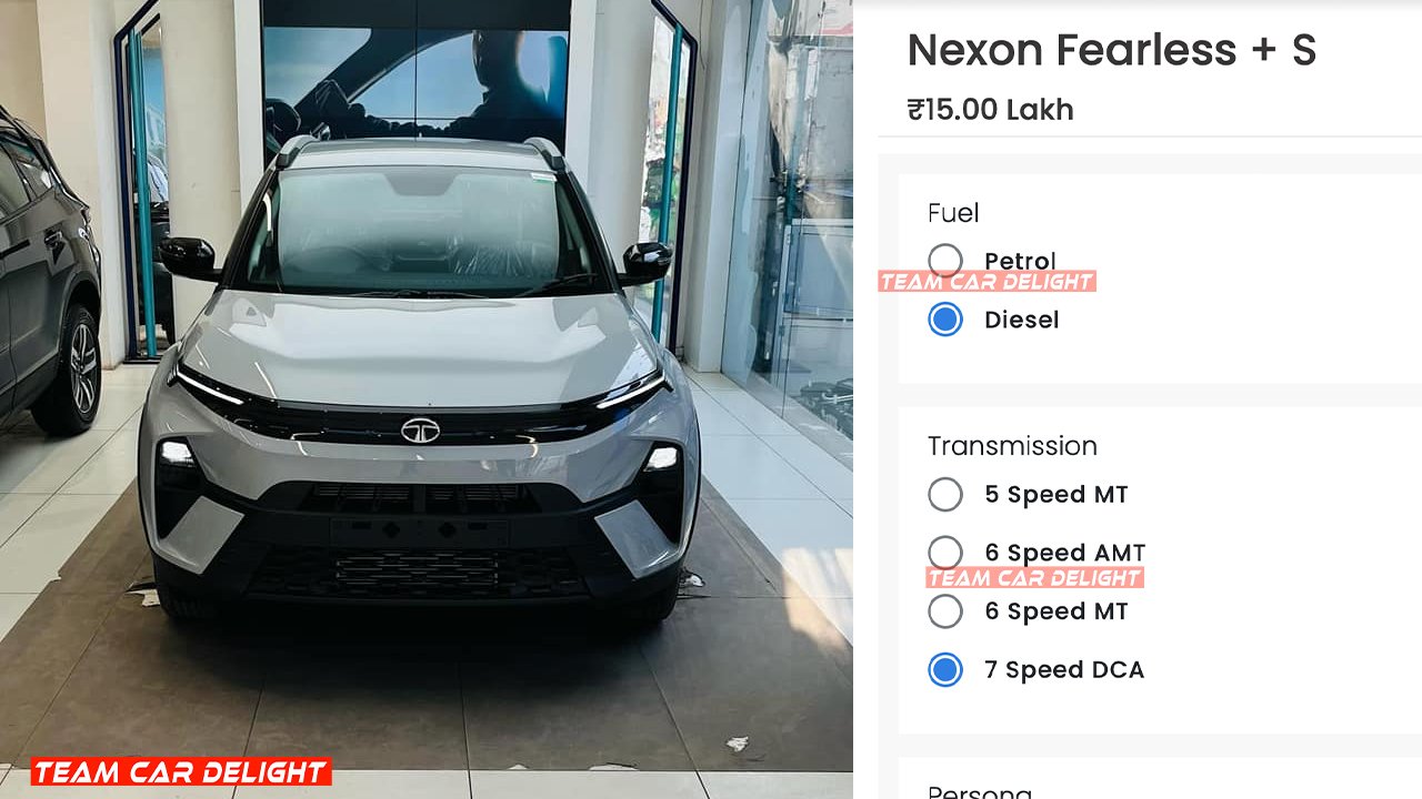 Now, it appears that Tata has extended this transmission offering to the Nexon as well, at least according to their official website. When booking the Nexon SUV with the diesel engine, you can now select a 7-speed DCA transmission. This option seems to be exclusive to the top-spec Fearless+ S variant, though other variants like Pure and Creative personas may eventually receive this option, as indicated by the greyed-out selection on the site.
